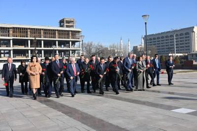 После обсуждений делегация почтила память павших в Великой Отечественной войне, возложив цветы к Мемориалу Победы на площади Победы. Здесь, у символичных бронзовых арок, которые напоминают силуэт юрты и олицетворяют возвращение домой, наблюдатели отдали дань уважения подвигу народа, внесшего огромный вклад в общую Победу.