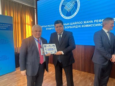 В продолжение рабочего дня состоялась встреча с председателем ЦИК Кыргызской Республики Тынчтыком Шайназаровым. В спокойной и деловой атмосфере обсуждались особенности текущей кампании, меры, предпринимаемые для повышения активности избирателей, а также результаты анализа подготовки к выборам, проведённого экспертами Международного института мониторинга МПА СНГ. В завершение Казбек Тайсаев передал председателю ЦИК памятный подарок от Государственной Думы.