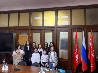 Погрузиться в атмосферу законотворческой работы ребятам помогла экскурсия по Государственной Думе, которую провела кандидат в члены ЦК КПРФ, депутат Старобешевского муниципального совета ДНР Анастасия Лорсанова. Дети побывали во фракции КПРФ, узнали, как разрабатываются и принимаются законы, и сделали памятные фотографии.