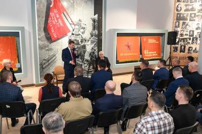 Затем делегация посетила Хакасский технический университет, где встретилась с руководителем кафедры военной подготовки филиала Сибирского федерального университета в Республике Хакасия Е.Н. Сибиряковым и учащимися кафедры. Военная кафедра ХТИ открылась в 2017 году и стала первой в Хакасии. Делегация осмотрела оснащенные военные классы, используемую для обучения боевую технику, оборудованный тир и военный музей.