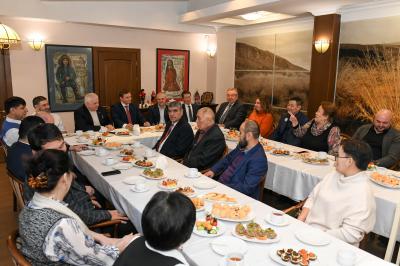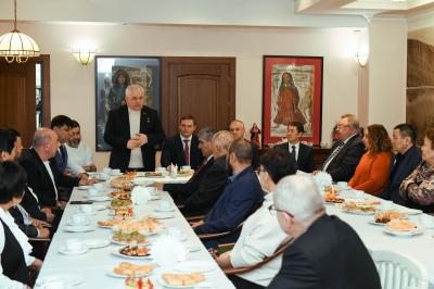 Вечером в здании Правительства Республики Хакасия состоялась встреча с руководством этнических и национальных объединений. Хакасия – многонациональный регион. В большой многонациональной семье Хакасии сегодня живут представители 107 народностей, в республике действуют 60 этнических и 119 религиозных организаций. Подобные встречи за чашкой чая проходят в Хакасии регулярно и уже стали доброй традицией. А в Год единства народов России, учрежденный Президентом России, и Год Дружбы народов Хакасии, объявленный Главой Республики, они приобретают особую значимость.
