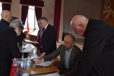 Перед началом заседания состоялась торжественная церемония вручения партийных билетов и награждения партактива медалями КПРФ «80 лет Великой Победы».