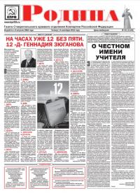 Газета Ставропольского крайкома КПРФ «Родина» № 35 (1140) 8 сентября 2016 года
