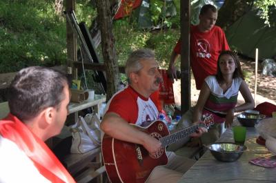 Затем состоялось свободное общение партийных лидеров и депутатов с молодежью. А в заключение Н.И.Осадчий, взяв в руки шестиструнную, вспомнил несколько старых походных песен...