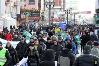 В Екатеринбурге 21 марта состоялась многотысячная несанкционированная демонстрация за снос памятника конструктивизма. Застройщик вместе с городской администрацией свёз на акцию более 5 тысяч студентов и гастарбайтеров.