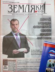 Тем не менее, пензенские единороссы добились приезда 12 сентября в Пензу премьер-министра России Дмитрия Медведева. Данный информационный повод до сих пор не сходит с проправительственных СМИ. 27 сентября, например, вышла очередная газета «Земляки. Пенза» с популистским выступлением Медведева «В Пензенской области хорошая атмосфера». Тираж издания составил 450 тыс. экземпляров, т.е. предназначен для каждого второго избирателя области.