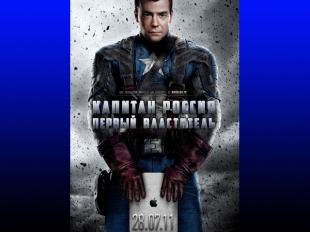 Плакаты с изображением президента РФ Дмитрия Медведева в образе героя комиксов Капитана Америки появились во вторник на остановках общественного транспорта в центре Москвы, в частности на Тверской улице. Постеры напоминают рекламу нового голливудского блокбастера "Капитан Америка: Первый мститель". Медведев изображен на плакатах в космическом обмундировании, опирающийся на огромный iPad2. На плакате написано: "Для создателей киносаги "ВВ прикроет" от Monolog.tv" (шрифтом поменьше) и "Капитан Россия. Первый властитель" (крупным шрифтом).