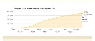 На вечер 18 июля собрано более 40 тыс. подписей в поддержку отставки. Против высказались чуть более 160 чел.