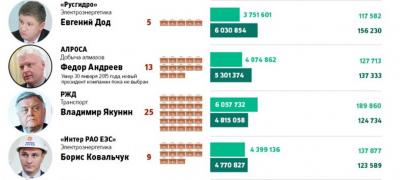 Лазарев - получили 2,8 млрд. руб. ($74 млн. .по среднему курсу в 2014 г.) В