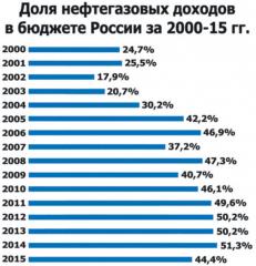 И если в 2015 году доля нефтегазовых доходов в бюджете России немного и
