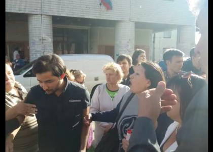 В самый разгар мероприятия и появились современные так называемые молодогвардейцы, которые попытались сорвать встречу, а выглядело это так.