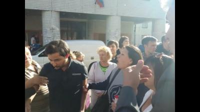 В самый разгар мероприятия и появились современные так называемые молодогвардейцы, которые попытались сорвать встречу, а выглядело это так.