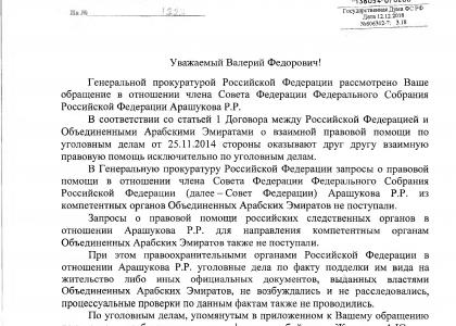 Более того, СовФед уже проводил проверку Арашукова касательно вида на жительство в ОАЭ, который, по данным генпрокуратуры Эмиратов, имел место в начале полномочий сенатора, однако не нашел подтверждений нарушения законодательного запрета.