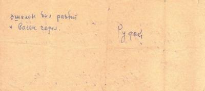 На обратной стороне справки написано: «Эшелон был разбит и вагон горел».