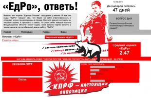 В интернете появился специальный сайт - "Едро, ответь!". На этом сайте каждый житель Владимирской области может задать свой вопрос партии власти, а также оценить по пятибальной шкале работу "ЕдРа". Но уже с момента запуска сайта на него стали выходить пользователи Интернет со всей России.