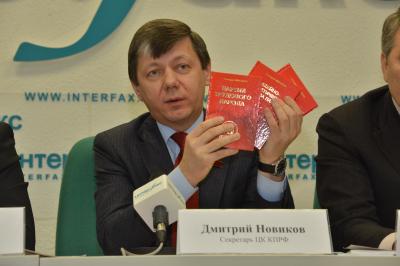 Член Президиума, секретарь ЦК КПРФ Д.Г. Новиков подчеркнул, что 20 лет партия самым тщательным образом анализирует процессы, происходящие в стране и в мире, предлагает свои пути выхода из кризиса. Затем он представил новый трехтомник Г.А. Зюганова. Первая книга называется «Партия трудового народа», вторая - «Идейно-теоретическая основа партии» и третья - «Глядя в будущее». В трех томах представлены основные документы КПРФ, показана история становления партии, изложена ее идейно-теоретическая основа. Это своеобразный подарок предстоящему Съезду КПРФ.