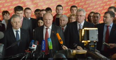 В перерыве XV Съезда КПРФ Г.А. Зюганов провел брифинг для журналистов. В пресс-конференции также приняли участие Первый секретарь ЦК Компартии Украины П.Н. Симоненко и Первый секретарь ЦК Компартии Белоруссии И.В. Карпенко.