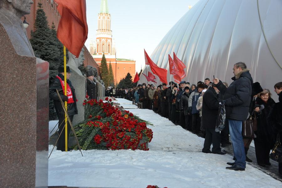 Несмотря на мороз, тысячи людей пришли в этот день на Красную площадь, чтобы почтить память И.В. Сталина. Могила Иосифа Виссарионовича буквально утопала в цветах. Венок от имени ЦК КПРФ возложил лидер коммунистов Г.А. Зюганов.