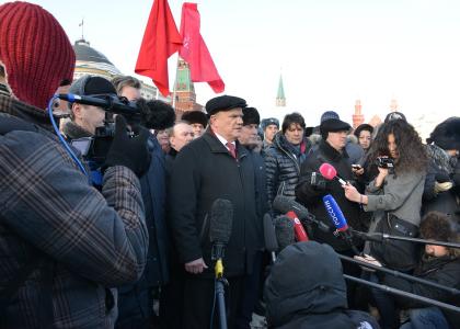 «Российское правительство находится в смятении и в шараханиях. Принимают то один, то другой закон, вместо того, чтобы утверждать наши лучшие традиции. Не шарахания, а железная поступь батальонов пролетариата, тех, кто трудится, кто охраняет страну, кто учится, кто изобретает, может вывести Россию из беды. Для этого нужны иной курс, иная политика. Еще раз хочу сказать: без идеалов Советской власти, без уникального опыта Ленина-Сталина мы не в состоянии выйти из этого кризиса. Светлая, добрая память всем героям Советской эпохи!» - так завершил свое выступление лидер КПРФ.