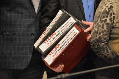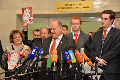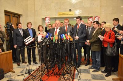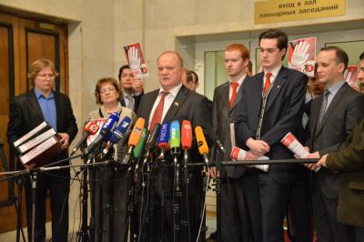 «На сегодня уже собрано 115 тысяч подписей, - подчеркнул Г.А. Зюганов, - и наши молодые товарищи готовы представить их общественности. Мы передадим эти материалы для того, чтобы их рассмотрело руководство страны, Государственная Дума и Совет Федерации».
