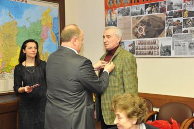 После этого Геннадий Андреевич вручил гостям медали, учрежденные ЦК КПРФ к 50-летнему юбилею полета Ю.А. Гагарина в космос.