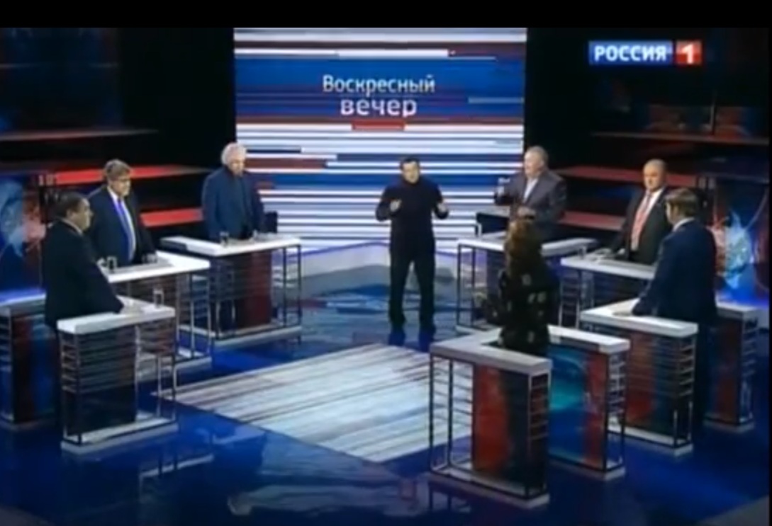 В: Здравствуйте, это программа "Воскресный вечер" и я Владимир Соловьев. Мы обсуждаем актуальные события недели с теми, кто делает политику, на политику влияет, и с теми, у кого есть свой, особый взгляд на происходящее.