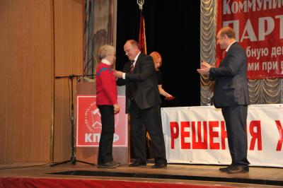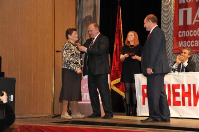 Встреча началась с награждения советника Председателя ЦК КПРФ Л.Н. Швец Почетной грамотой Московского горкома Компартии.