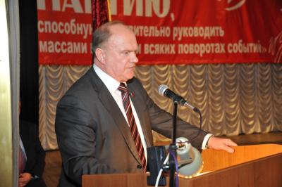 Сначала он проинформировал актив о работе партии в течение двух месяцев, прошедших после XV Съезда. «За это время все организации провели торжественные собрания и пленумы, организовали хороший прием в партию – она пополнилась четырьмя тысячами новых политических бойцов, повсеместно прошли митинги в защиту прав трудящихся, - рассказал Геннадий Андреевич. – И ленинские дни прошли дружно и организованно». В дополнение лидер КПРФ отметил, что коммунисты неустанно следили за тем, чтобы мавзолей советского вождя был отреставрирован вовремя.