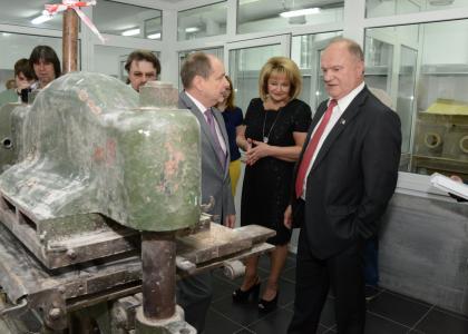Перед входом в здание ГСИИ лидера российских коммунистов, прибывшего сюда вместе с руководителем аппарата фракции КПРФ в Госдуме Н.А. Останиной и главой пресс-службы ЦК Компартии А.А. Ющенко, тепло встретил ректор А.Н. Якупов. Он организовал для Г.А. Зюганова небольшую экскурсию по институту.