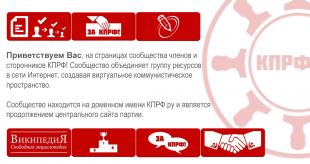 Подотдел информатизации отдела ЦК КПРФ по информационно-аналитической работе и проведению выборных кампаний сегодня открывает новый портал «Интернет-сообщество сторонников и членов КПРФ». Интернет-сообщество является продолжением интернет-портала КПРФ.ру и объединяет группу ресурсов в сети Интернет, создавая виртуальное коммунистическое пространство на своих страницах. Сообщество создано в свете решений XV съезда КПРФ по дальнейшему развитию и совершенствованию информационно-пропагандистской работы Партии.