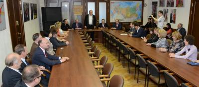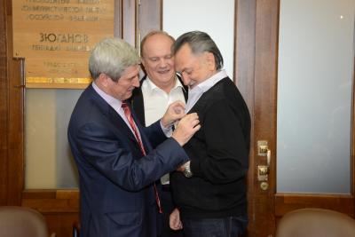Первый заместитель Председателя ЦК КПРФ, Первый заместитель Председателя Государственной Думы И.И. Мельников зачитал решение Президиума ЦК КПРФ о награждении Народного артиста Республики Беларусь А.И. Ярмоленко памятной медалью «90 лет СССР».