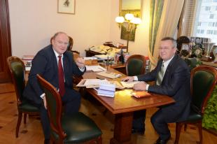 13 ноября Председатель ЦК КПРФ Г.А.Зюганов в своем рабочем кабинете в Государственной Думе провел встречу с членом ЦК КПРФ, первым секретарем Псковского областного комитета КПРФ А.А.Роговым.