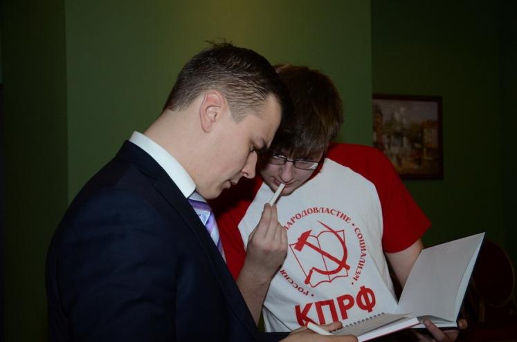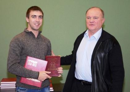 Затем наступила очередь вручения итоговых документов. Каждый выпускник получил диплом из рук лидера КПРФ Геннадия Зюганова. Список прошедших обучение был оглашен руководителем Центра политической учебы Станиславом Аниховским. Кроме того, участники школы получили в подарок альбомы, изданные к 100-летию со дня выхода в свет первого номера газеты «Правда». Вручение альбомов провел заместитель Председателя ЦК КПРФ Дмитрий Новиков.