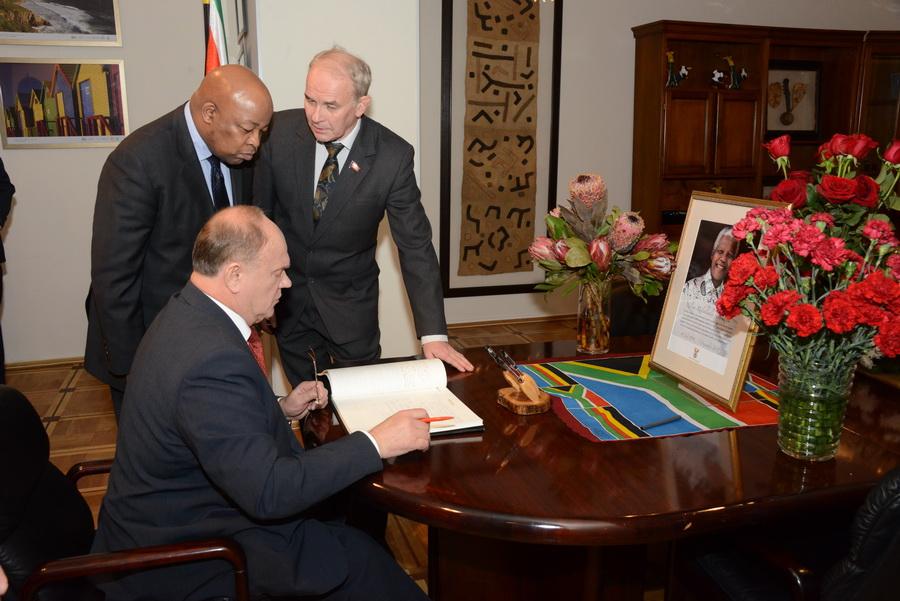 11 декабря Председатель ЦК КПРФ Г.А. Зюганов посетил посольство ЮАР в Москве, где выразил свои соболезнования в связи с кончиной первого чернокожего Президента ЮАР, руководителя Африканского национального конгресса, лауреата Нобелевской премии Нельсона Манделы.