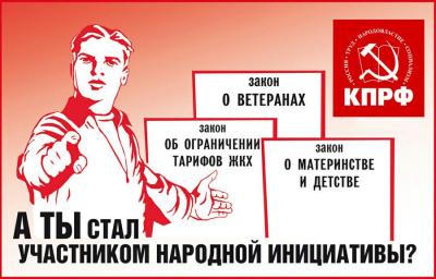 Обобщая опыт проведения голосований в Интернете по самым различным вопросам, принимая в расчёт несовершенство процедур реализации инициатив граждан посредством РОИ, и добиваясь максимального приближения законотворческого процесса к реальным нуждам и интересам граждан, КПРФ запускает проект «Народная инициатива» (http://kprf.ru/party-live/cknews/121903.html) - специализированный Интернет-портал, позволяющий гражданам России в полной мере реализовать свои конструктивные идеи.