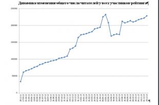 Динамику изменения общего числа читателей у всех участников рейтинга можно посмотренть в гр.1.