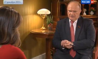 Телеканал "Россия-24" показал 12 января получасовое интервью лидера КПРФ Г.А.Зюганова, посвященное итогам 2013 года и политическим задачам, которые стоят перед страной в новом, 2014-м.
