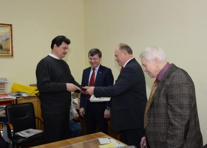 23 января в редакции газеты «Советская Россия» состоялась церемония вручения ежегодной премии «Слово к народу» за 2013 год. Вручили премии и дипломы лауреатам Председатель ЦК КПРФ Г.А. Зюганов и главный редактор газеты "Советская Россия", депутат Госдумы В.В. Чикин. В мероприятии принял участие заместитель Председателя ЦК КПРФ, депутат Госдумы Д.Г. Новиков.
