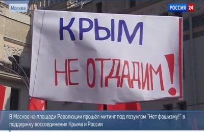 Среди наиболее примечательных народных лозунгов были "Крым не отдадим!", "С возвращением, Крым!", "Янки, гоу хоум!", "Дошли до Берлина - дойдем и до Вашингтона!", "Эй, США, слюни подбери!", "Нет фашизму!" и др