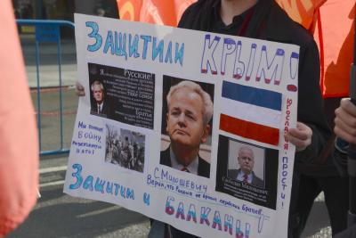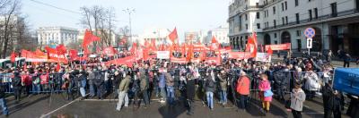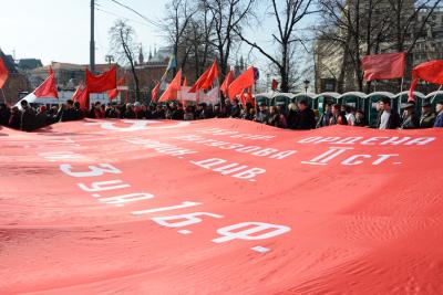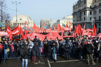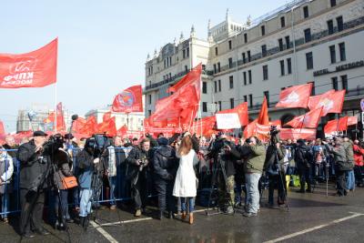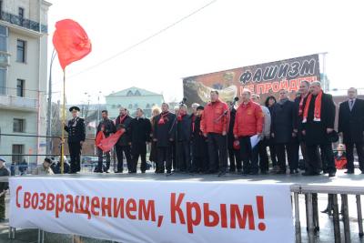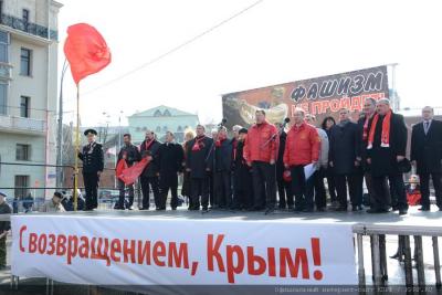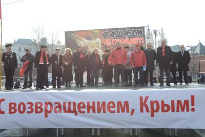 22 марта в Москве, на площади Революции, прошла многотысячная акция КПРФ в поддержку Крыма, Севастополя и Юго-Востока Украины. Основной лозунг манифестантов «Нет фашизму!».