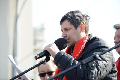 Член Президиума ЦК КПРФ, руководитель фракции КПРФ в Мосгордуме А.Е. Клычков напомнил москвичам о приближающихся выборах в городскую Думу. Он подчеркнул, что жители столицы должны взять пример с крымчан, проявивших волю и способность к самоорганизации. «Вернем себе Москву! Возьмем власть и будем жить для народа!», - призвал участников митинга А.Е. Клычков.