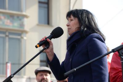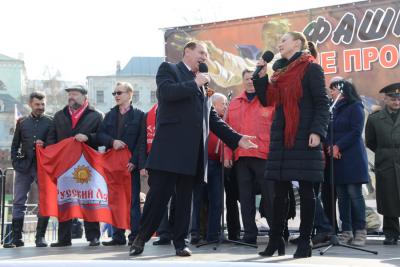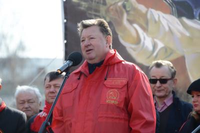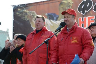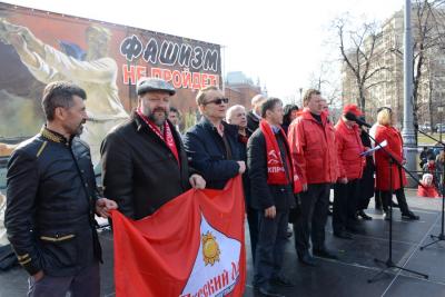 Первый секретарь Московского областного комитета КПРФ, депутат Госдумы Н.И. Васильев с горечью отметил, что в Европе снова появился очаг фашизма и бандеровщины, который несет угрозу всем народам. Виновными в разжигании таких очагов конфронтации оратор назвал США и страны Запада. «Не отступать! И не сдаваться!», - призвал Н.И. Васильев. «Украина будет советской!», - скандировали участники митинга.