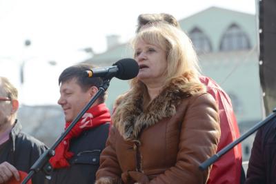 Слово для выступления было предоставлено сопредседателю движения «Всероссийский женский союз – «Надежда России» Н.А. Останиной. Она рассказала о своей недавней поездке в Крым в составе делегации КПРФ, в которую вошли известные артисты. Наша команда выступала на митинге в Севастополе в поддержку крымского референдума. На площадь Нахимова в тот день собрались тысячи людей, чтобы выразить свое желание жить единой семьей с Россией.