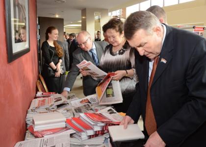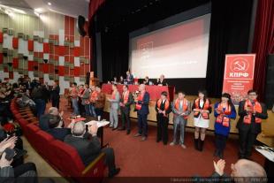 Затем Г.А. Зюганов вручил партийные билеты группе молодых коммунистов. Он сообщил, что по призыву, посвященному 70-летию Великой Победы, в нашу партию за последнее время вступило 16 тысяч человек.