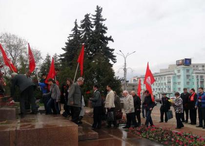 22 апреля курские коммунисты по традиции собрались у памятника вождю мирового пролетариата В.И. Ленину на Красной площади, чтобы почтить память и положить алые гвоздики у его подножия.