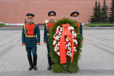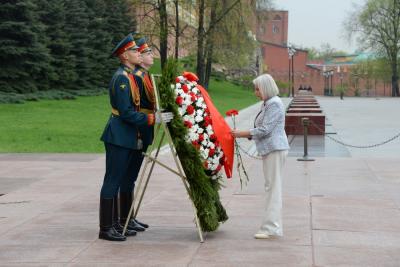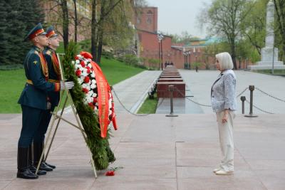 Сегодня вы посетили священные для нас всех места: Мавзолей В.И. Ленина и Могилу неизвестного солдата. Символично, что Вы собрались в Москве в дни, когда все мыслящие люди мира отмечали 144-ю годовщину со дня рождения В.И. Ленина. Хотел бы сказать, что торжественные мероприятия, посвященные этой дате, прошли по всей России – от Владивостока до Калининграда. Будем очень рады видеть Вас завтра на праздничной демонстрации в День международной солидарности трудящихся 1 мая.