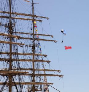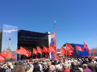 …В этот светлый, солнечный день Севастополь как будто вновь стал советским городом. И как бы в подтверждение этому над площадью Нахимова в безоблачном небе пролетел мотодельтаплан с огромным Красным Знаменем Победы.