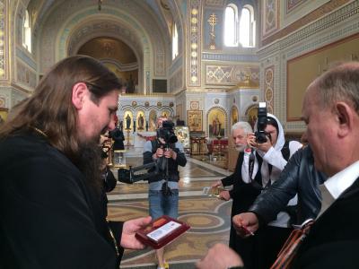 Затем памятные медали были вручены большой группе ветеранов Вооруженных Сил, многие из которых стояли на блок-постах в феврале-марте нынешнего года. Еще одним награжденным стал Народный артист России В.П. Овсянников.