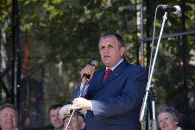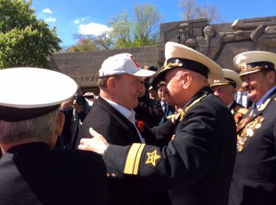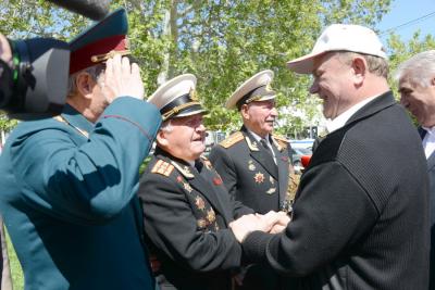 Генерал-лейтенант авиации Г.М. Бенов передал севастопольцам поздравления от ЦИК Международного союза советских офицеров. Он подчеркнул, что крымская земля овеяна славой. Это Родина дважды Героя Советского Союза Амет-Хана Султана, основоположника космонавтики С.П. Королева, тысяч героических летчиков и моряков. «Примите наши искренние поздравления с победами в 1944-м и 2014-м, - обратился к севастопольцам Г.М. Бенов. – Это только начало, все еще впереди!»