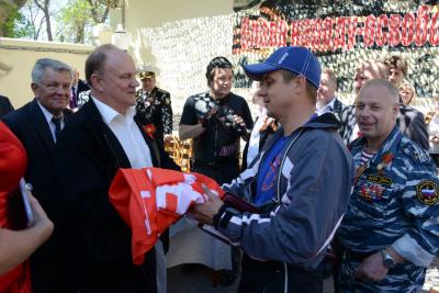 7 мая делегация ЦК КПРФ во главе с Г.А. Зюгановым прибыла в Севастополь, чтобы принять участие в торжественных мероприятиях, приуроченных к 70-летию освобождения города. На границе Севастополя лидера коммунистов встретили участники мотопробега, посвященного этой знаменательной дате. Они продолжили движение в колонне КПРФ под красными флагами и знаменами Победы.